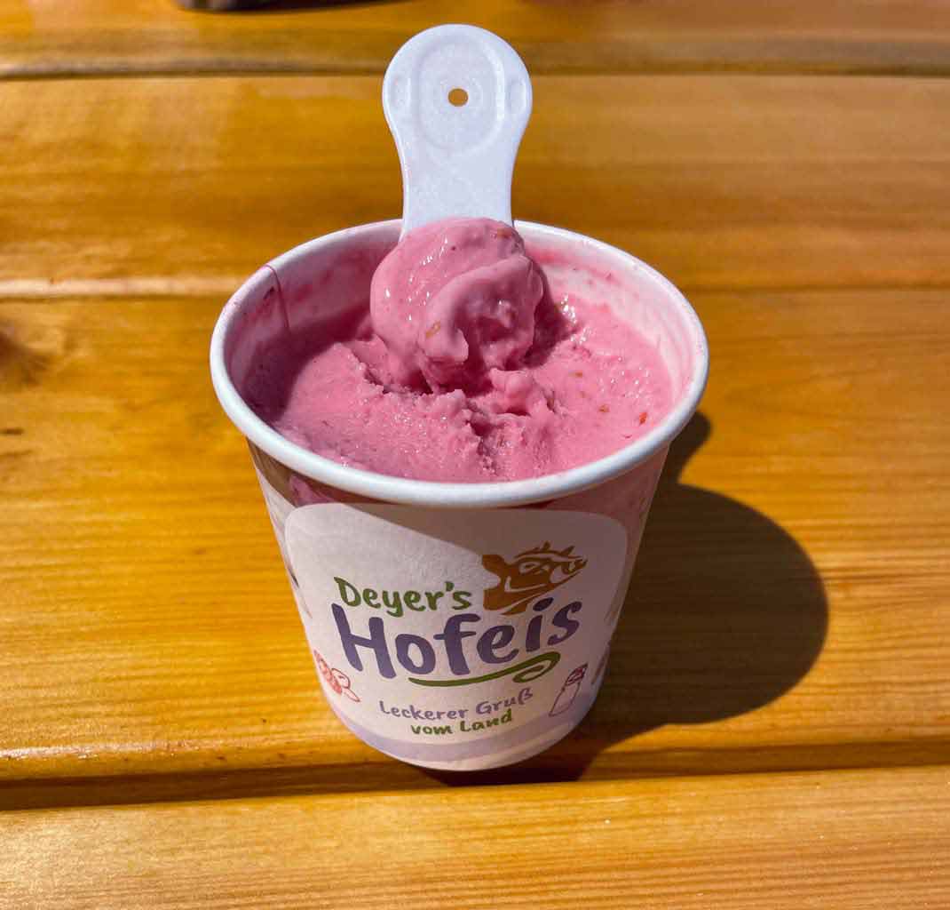 Außerdem haben wir eine sehr große Auswahl an unterschiedlichen leckeren Eissorten vom Land.